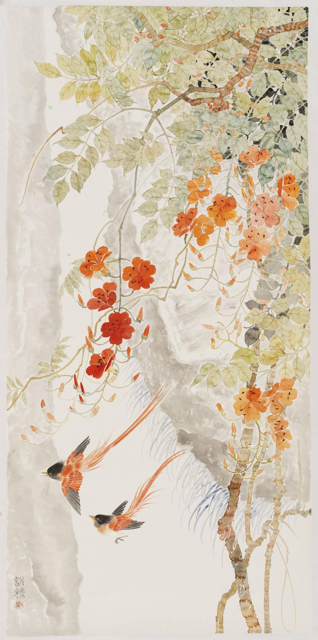 邹训精的艺术实践体现了当代艺术家对文化传统的深刻理解与创新诠释。展览选择在鼓浪屿这一中西文化交汇的历史场域举办,更具象征意义,呼应了“传统的回响”这一主题所倡导的跨时空对话。作为当代中国工笔画领域的中坚力量,邹训精的作品不仅技法精湛,更在题材和观念上实现了传统绘画语言的当代转化,为中国工笔画的发展提供了新的思路与方向。