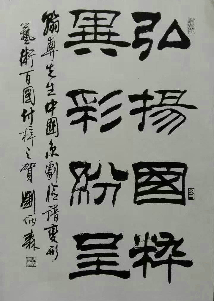 著名书法家刘炳森先生为王翰尊所绘京剧脸谱题字