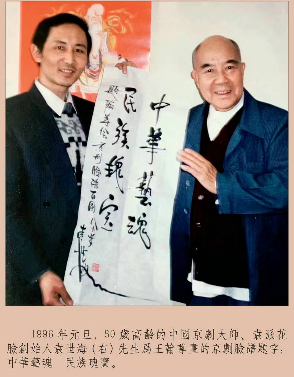 画册封底则选用了已故京剧“袁派净角”(架子花脸)表演艺术家袁世海先生在几十年前为王翰尊所绘京剧脸谱题字后与之合影的珍贵照片……