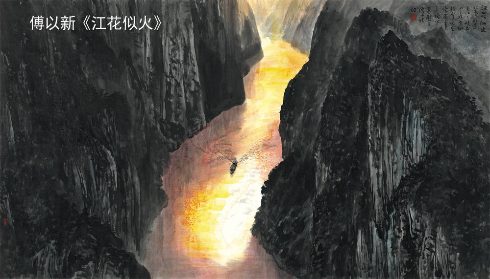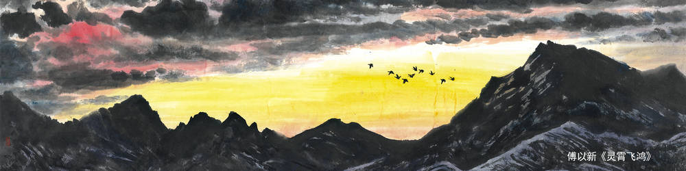 傅以新,1943年生, 1966年毕业于中央美术学院中国画系,导师李可染、 李苦禅、宗其香、李斛。先 后任天津美术学院教授,中央民族大学艺术研究所教授和校学术委员会委员。中国美术家协会和中国书法家协会会员,李可染画院和书画频道中国书画艺术研究院研究员,北京中山书画社副社长。其作品以“融光入墨”的独特风格在画坛独树一帜。此次在北京西站展出的《灵霄飞鸿》《启航》等作品,将传统水墨的苍劲与光影色彩的灵动结合——山峦在云霞暖光中舒展肌理,飞鸟掠过的光晕里藏着诗词韵律,正如他所言:“对光的感动,让每幅作品都有了不同的个性。”