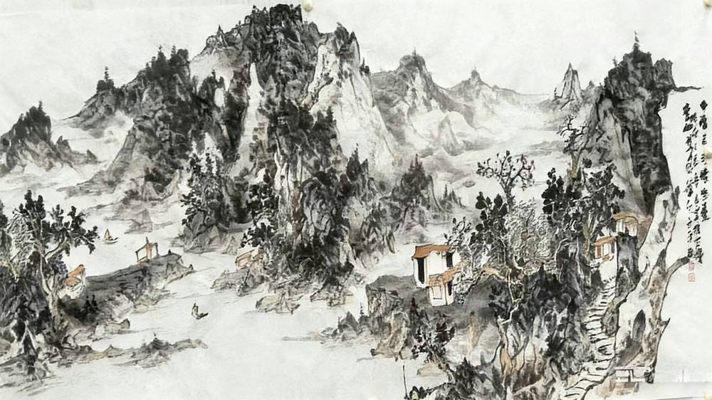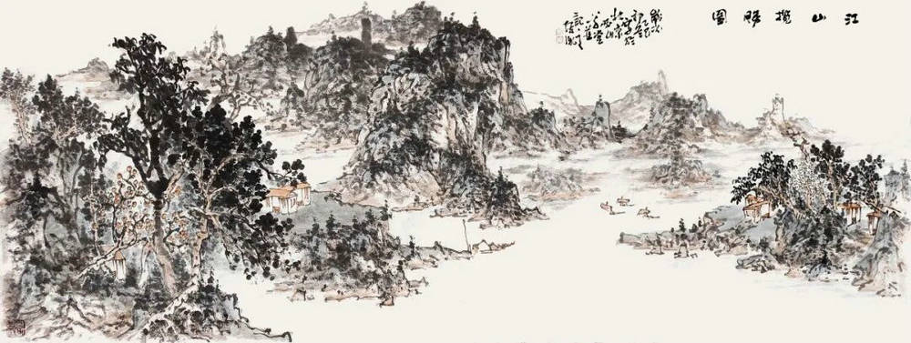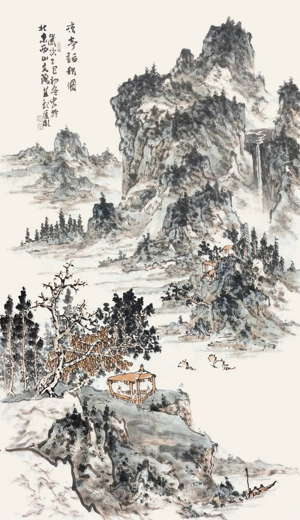 笔墨灵动,气韵生动:笔法多变且服务于整体气韵,山石勾勒见骨力,皴染结合显体积;树木枝干虬劲,点叶错落有致。设色多以水墨为主,间施淡彩,不重华丽,旨在突出笔墨本身的魅力与山川的自然神韵。作品既具雄强的骨力,又不失清雅的韵致,洋溢着鲜活的生命力与沉静的人文气息。
