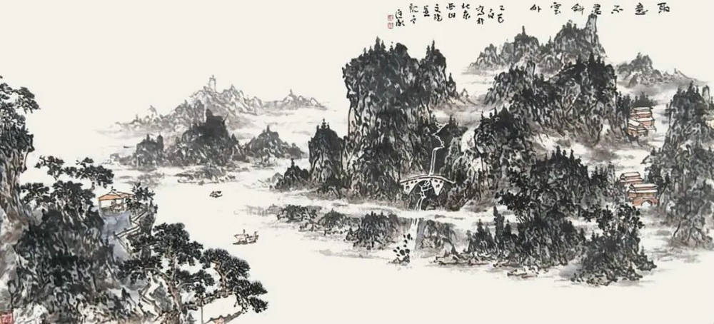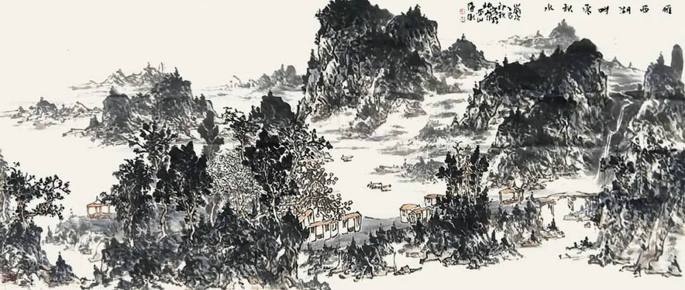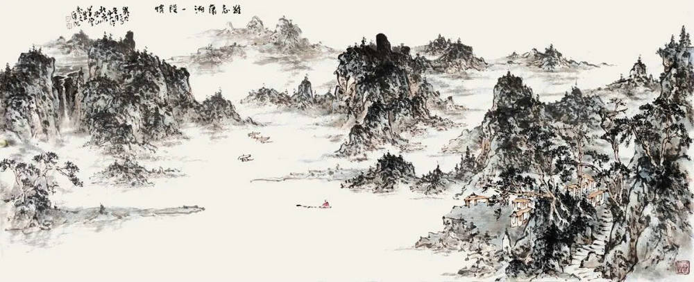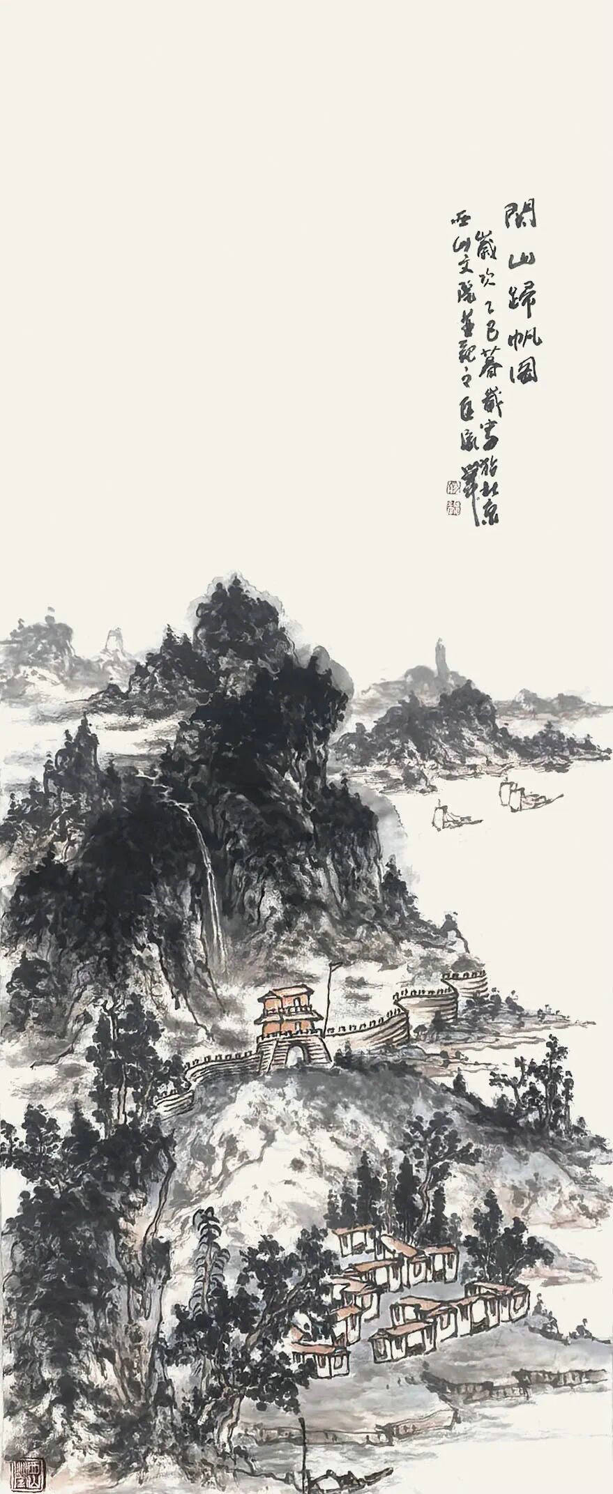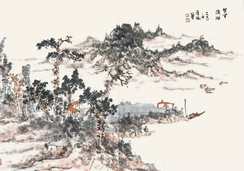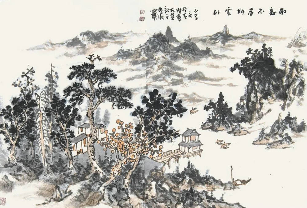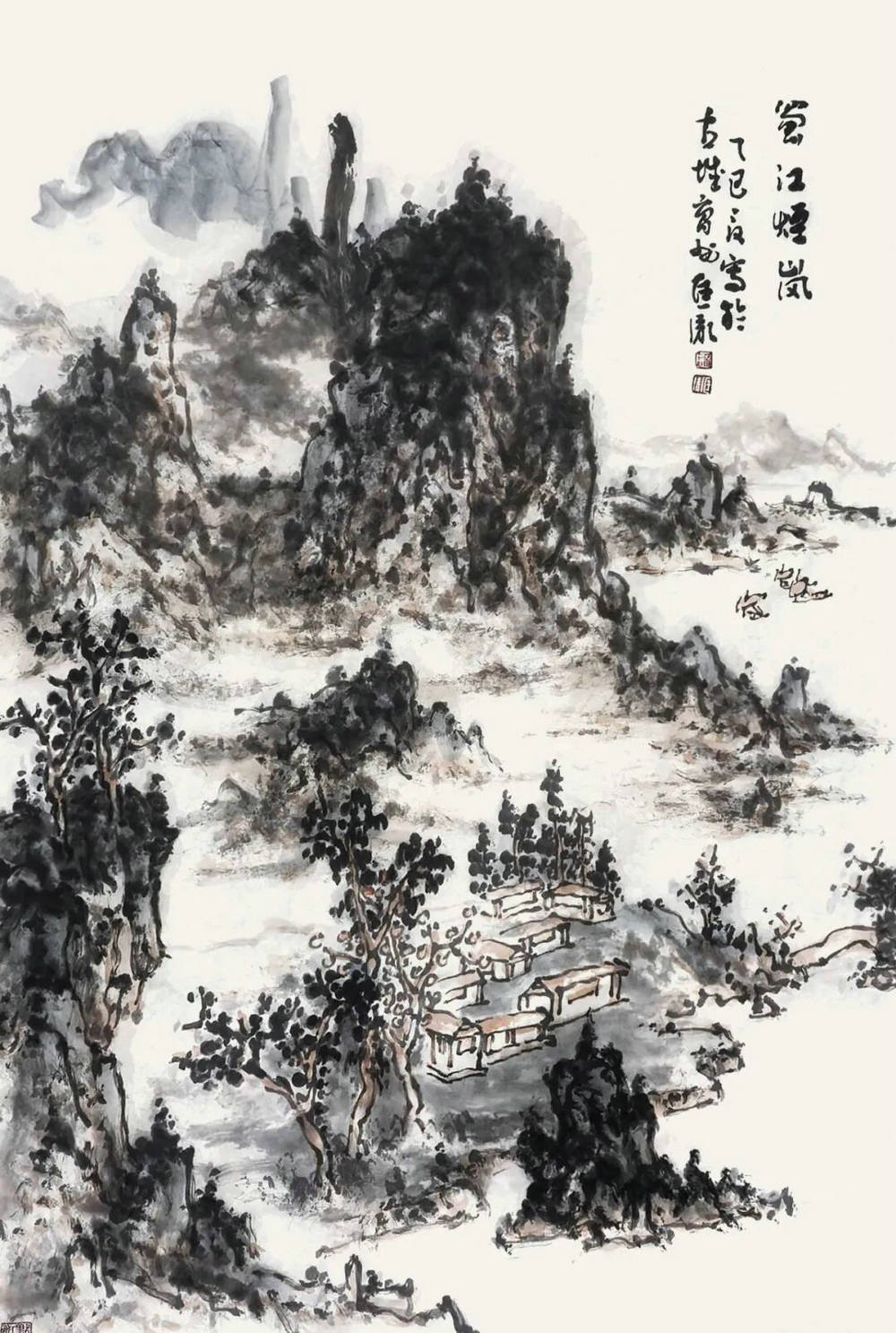 传统筑基,融古出新:深耕宋元诸家及清四僧、黄宾虹等笔墨精髓,师从范扬、李荣海、白崇然等名家,练就扎实的传统功底。他不泥古法,将大痴的苍润、石涛的灵变、龚贤的积墨法融会贯通,转化为适配当代审美与实景写生的笔墨语言。用笔兼具书法笔意,提按顿挫分明,刚劲中含蕴藉;用墨层次丰富,浓淡干湿焦互破互融,追求浑厚华滋的质感。