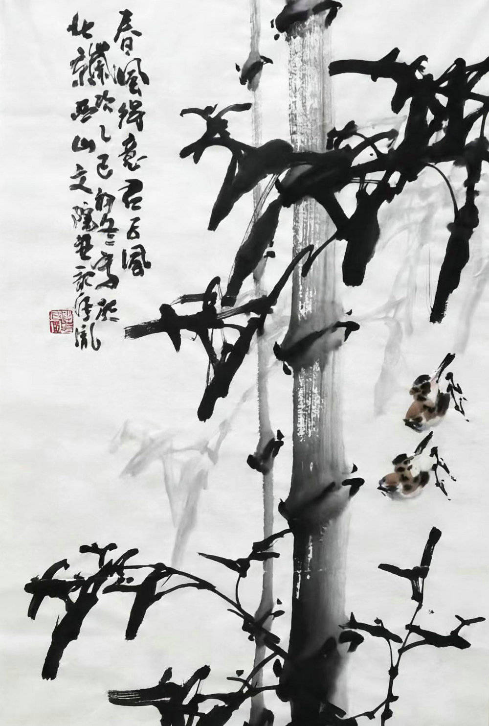 取法徐渭、八大、石涛的写意精神,兼学宋院体的形神观,受范扬等老师影响,师古不泥古。