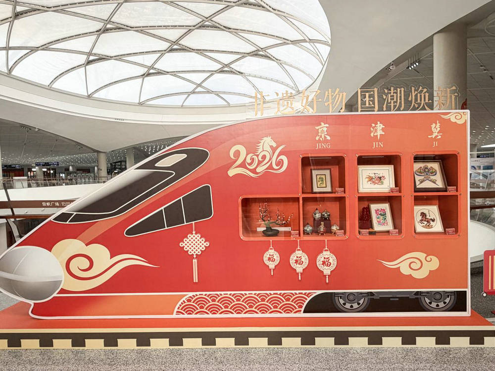 走进通州站候车厅,映入眼帘的是“轨道上的京津冀”非遗文化驿站。这座以列车车头为造型设计的文化空间,集中展示了京津冀三地精选的非遗作品,旅客在候车间隙,不仅能近距离欣赏这些非遗精品,还能随心选购,让文化记忆成为可以带走的旅途礼物。据悉,天津、唐山、秦皇岛三座车站的文化驿站将在春节期间陆续启航,形成贯穿京津冀的“文化接力”,形成贯穿京津冀的“文化接力”,让非遗随着轨道延伸,走进更多人的旅途记忆。