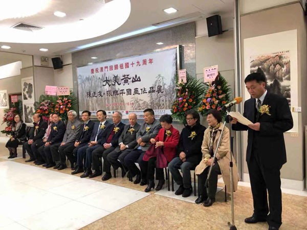 陈廷友、张继平先后致词,感谢获邀来澳参展。期望通过展览,让澳门居民感受到二人画笔下各时节的黄山盛景。