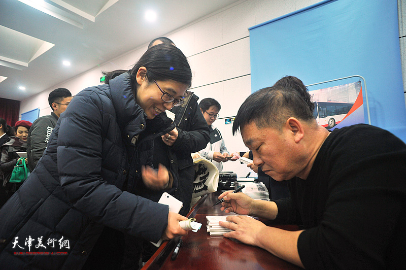 画家皮志刚在现场为市民在京津冀互联互通主题卡上签名留念。