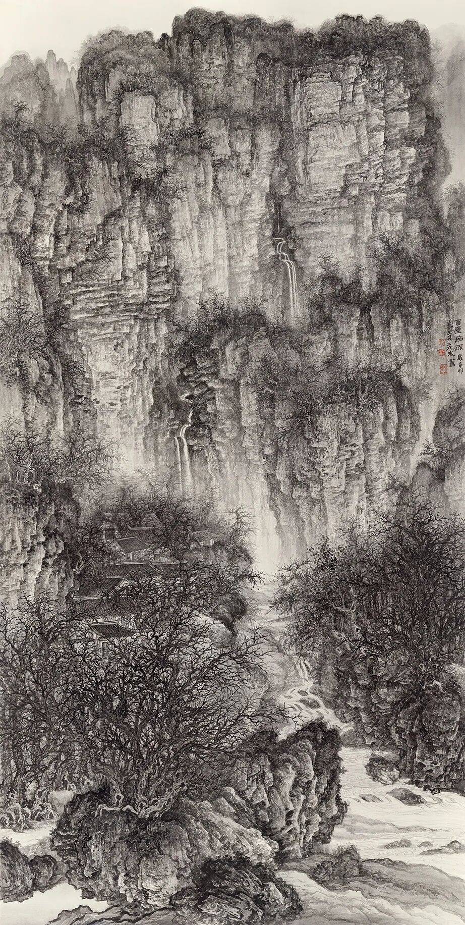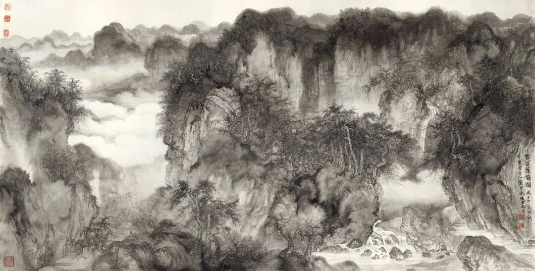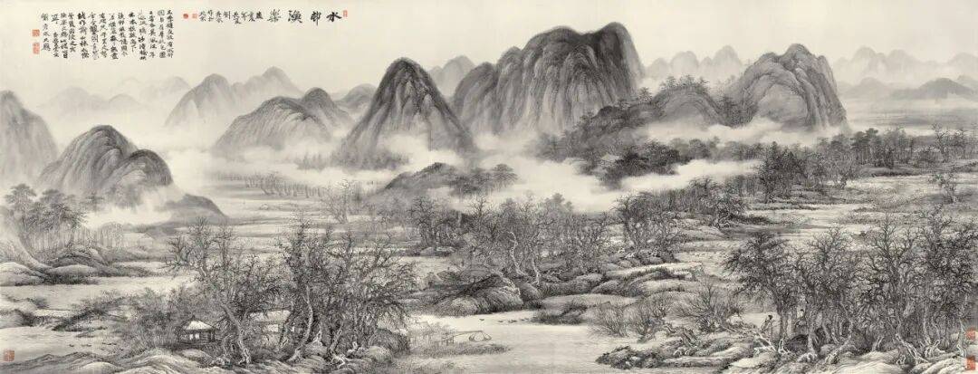 展览汇聚了刘彦水多年来创作的山水画精品,其作品既传承了五代、宋元以来的艺术精髓,取宋人丘壑之严谨、元人笔墨之萧散,又融入明清诸家之气韵,更彰显时代精神。观其画作,峰峦出没、云雾显晦、烟林森渺、溪桥渔浦,或雄浑壮阔、或清雅幽远,千笔万线间尽显自然拙朴的生命力,既展现了“峰峦浑厚,气势雄强”的全景式山水气象,又传递出人与自然和谐共生的东方智慧,恰如古贤所言“方寸千岩,足以澄怀味象;咫尺万壑,无异半亩方塘”。