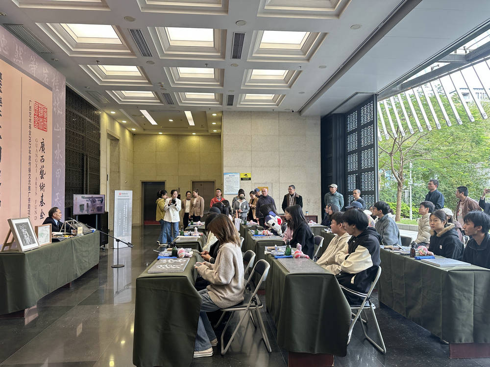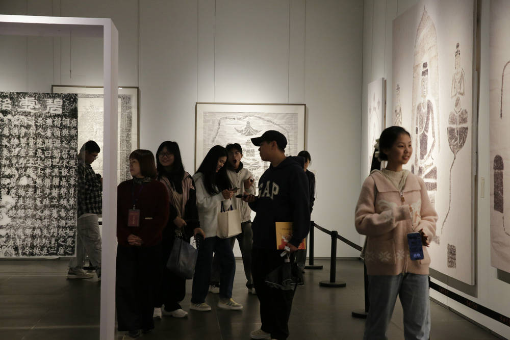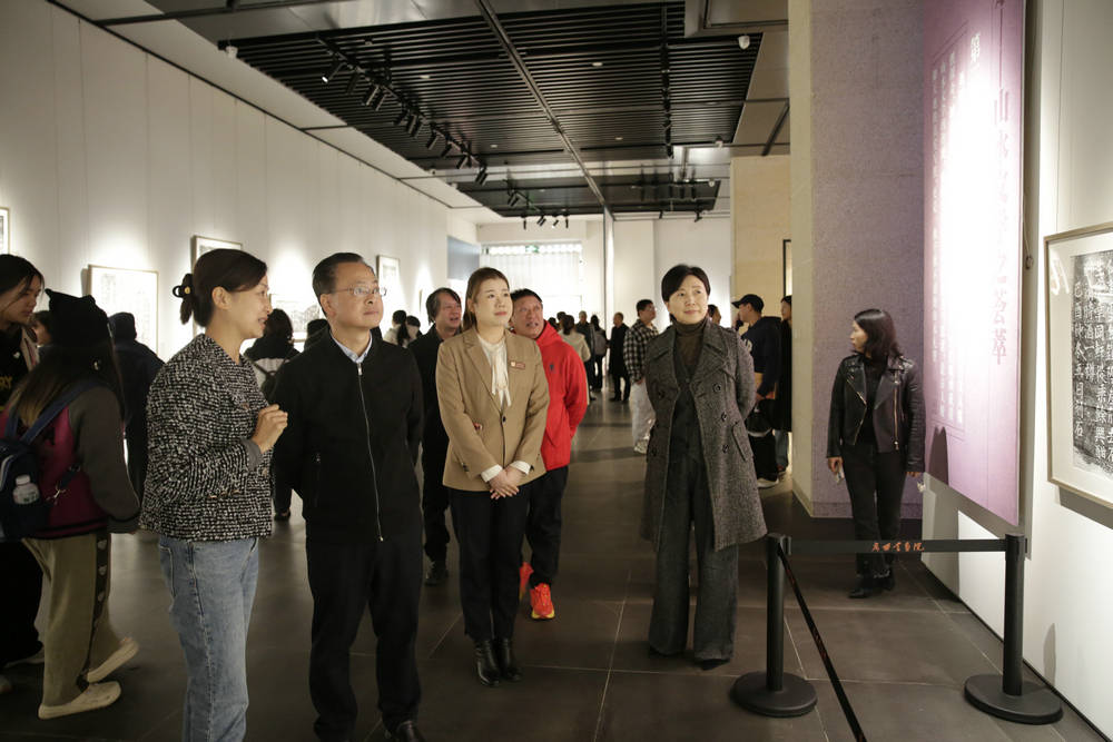 展览现场同时举办了学术研讨和非遗拓印体验等系列公共活动,邀请区内文博、美术及高校领域的学者与创作者进行深入交流与探讨,围绕“石刻艺术的历史价值与当代启示”展开多维对话。活动吸引了众多艺术爱好者、市民及高校师生积极参与,进一步拓宽了传统艺术传播的公共空间,现场气氛热烈,反响良好。