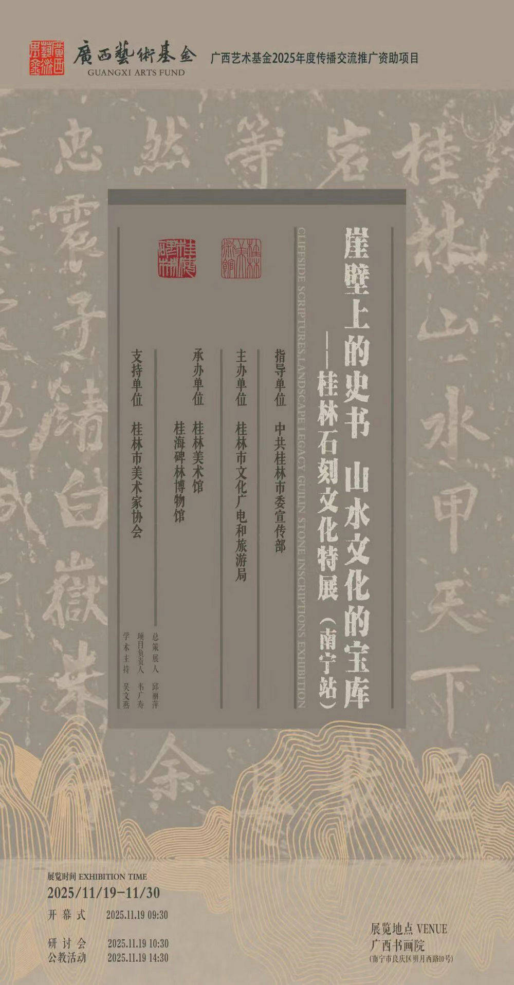 广西艺术基金2025年度传播交流推广资助项目:崖壁上的史书 山水文化的宝库——桂林石刻文化特展(南宁站)