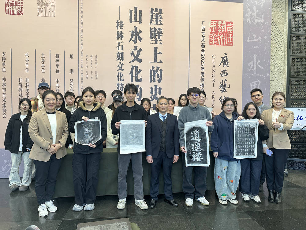 “崖壁上的史书 山水文化的宝库——桂林石刻文化特展”是桂林美术馆获得广西艺术基金2025年度传播交流推广资助的重要项目成果,自启动以来,展览已在区内多个城市进行巡展,形成了以学术研究为支撑、艺术展示为载体、公众教育为延伸的综合推广模式。本项目的实施不仅推动了广西地域文化资源的系统整理与再传播,也为桂林山水文化在新时代语境下的创造性转化与创新性发展提供了生动范例,充分展现了桂林作为“山水与文化共生之城”的独特精神气象与时代魅力。