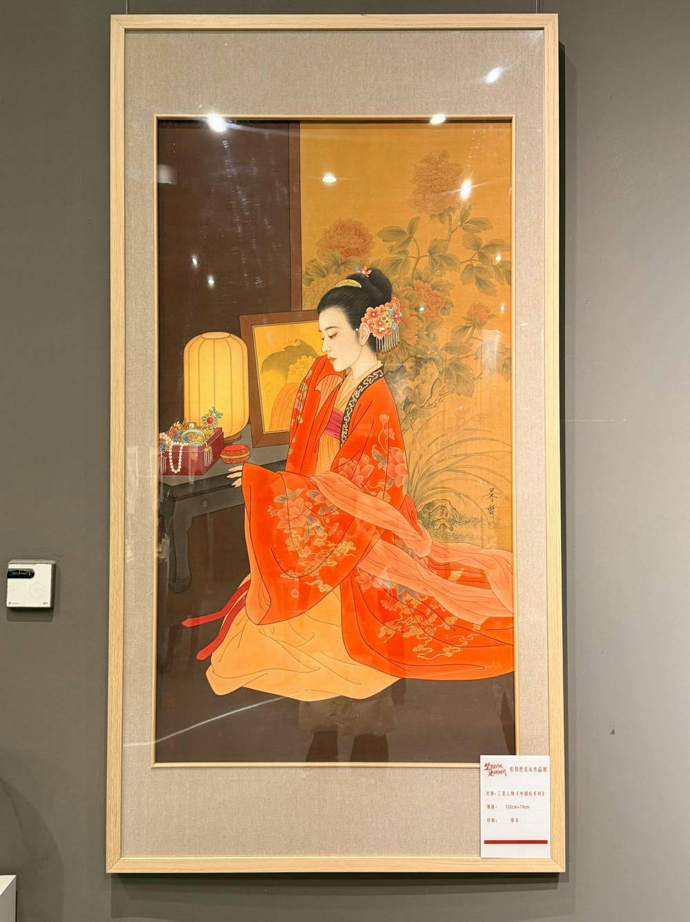 此次展出的“中国红”系列作品,是崔景哲多年艺术创作的精华所在。画作中,身着中国传统红色服饰的人物形象与工笔画特有的细腻技法相得益彰,既展现了东方美学的独特韵味,又传递出中华民族的文化自信。在展览开幕同日,数交宝正式开启了“中国红”数字资产交易市场,通过数字转化,艺术珍品在虚拟空间中延续生命,实现了从实体展厅到数字空间的跨越。