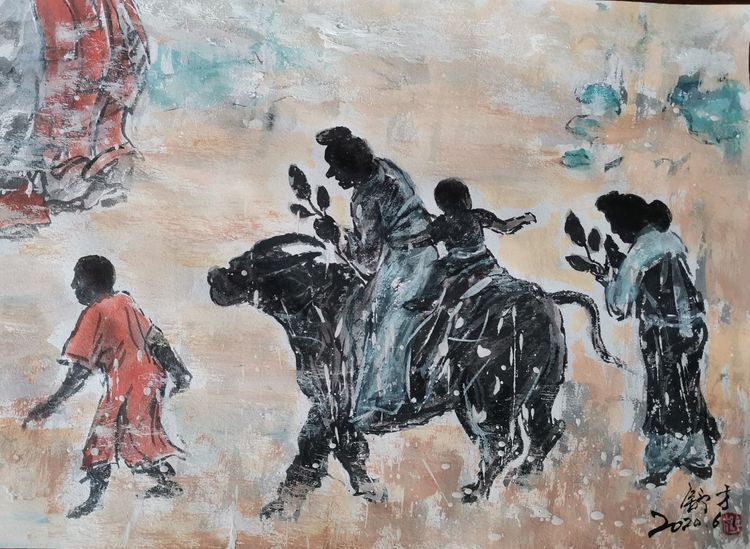 人物不好画,你却画得好,可见你深厚的底子,临摹古画很多,你能把西画里的东西运用到中国画里面,这很好。