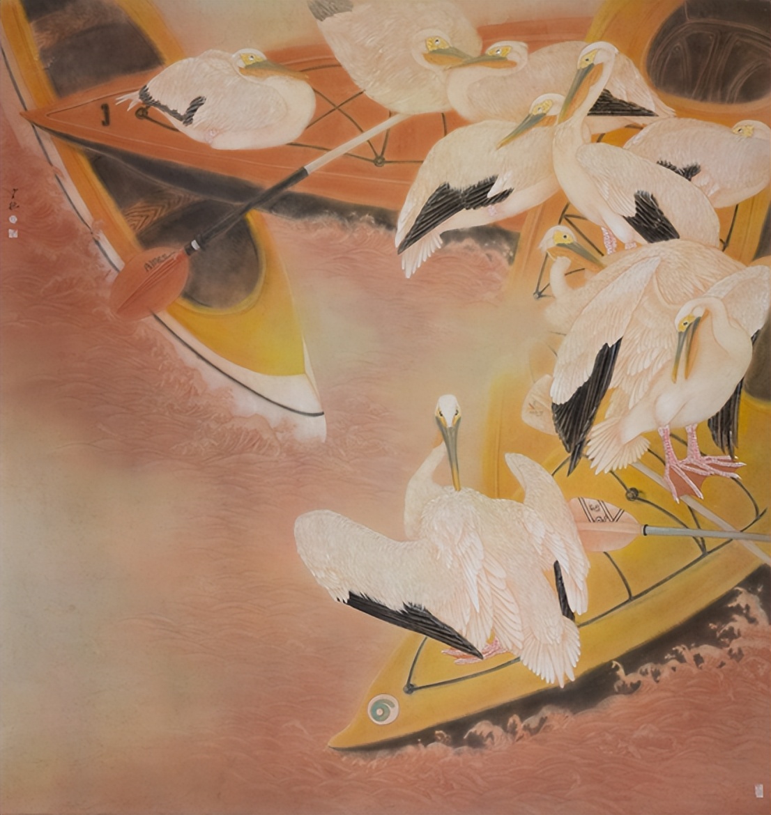 王少桓经过多年的绘画探索与实践,其写意与工笔融汇的相当有水平,可以用轻车熟路来形容。观其花鸟画,技法多样,用笔含蓄,清秀雅丽,画法工整,既有文人画的情调和韵味,又有浓厚的生活气息。